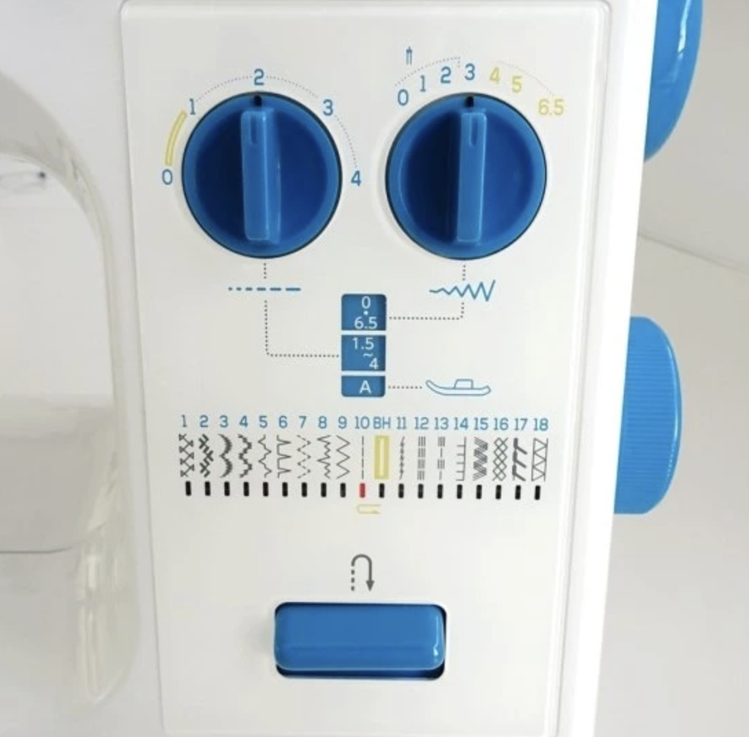 - 19 Diseños: 10 dibujos automáticos, 8 superautomáticos incluyendo 2 festones y 1 Ojal.