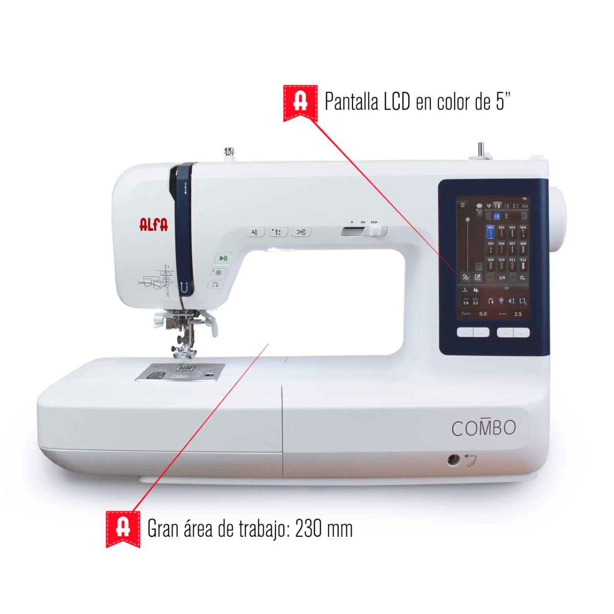 La máquina Alfa COMBO ofrece una amplia gama de características y funciones para satisfacer todas tus necesidades de costura y bordado: