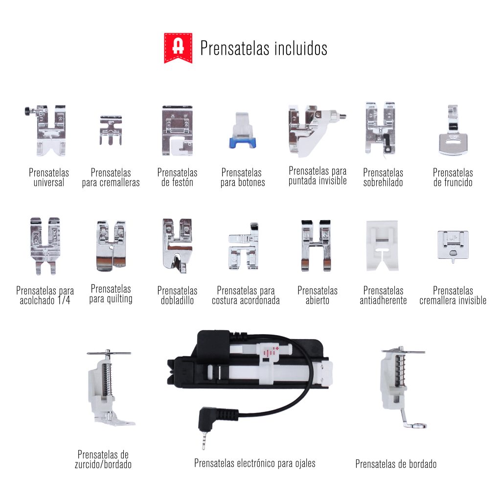 – **Enhebrador automático de un solo toque:** Simplifica el proceso de enhebrado con el enhebrador automático de un solo toque, ahorrándote tiempo y esfuerzo.