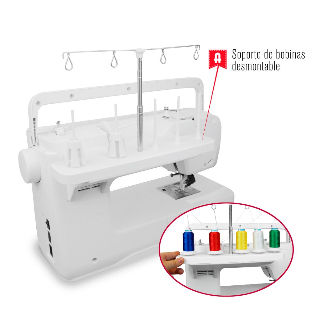 – **5 lámparas LED:** La iluminación LED integrada proporciona una luz brillante y uniforme sobre el área de trabajo, facilitando la visibilidad mientras coses.