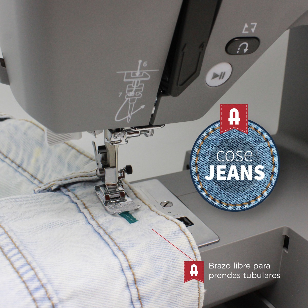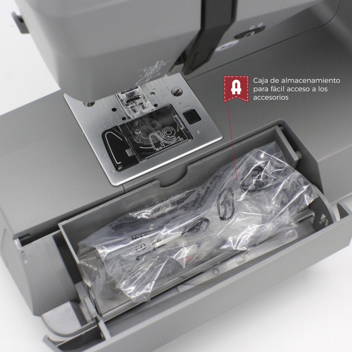 - Sistema de placa de puntada recta para mayor precisión en tejidos finos.