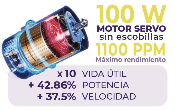 Motor Servo de 100 W sin escobillas: incrementa la eficiencia y prolonga la vida útil de la máquina.