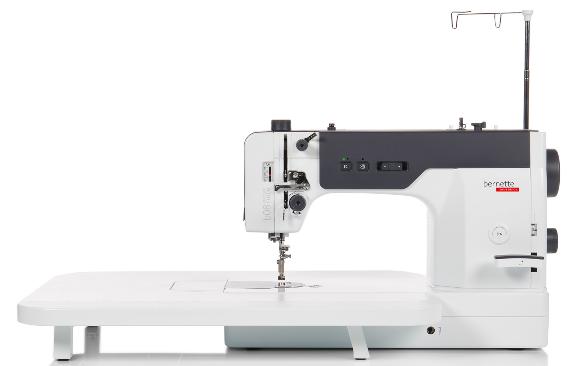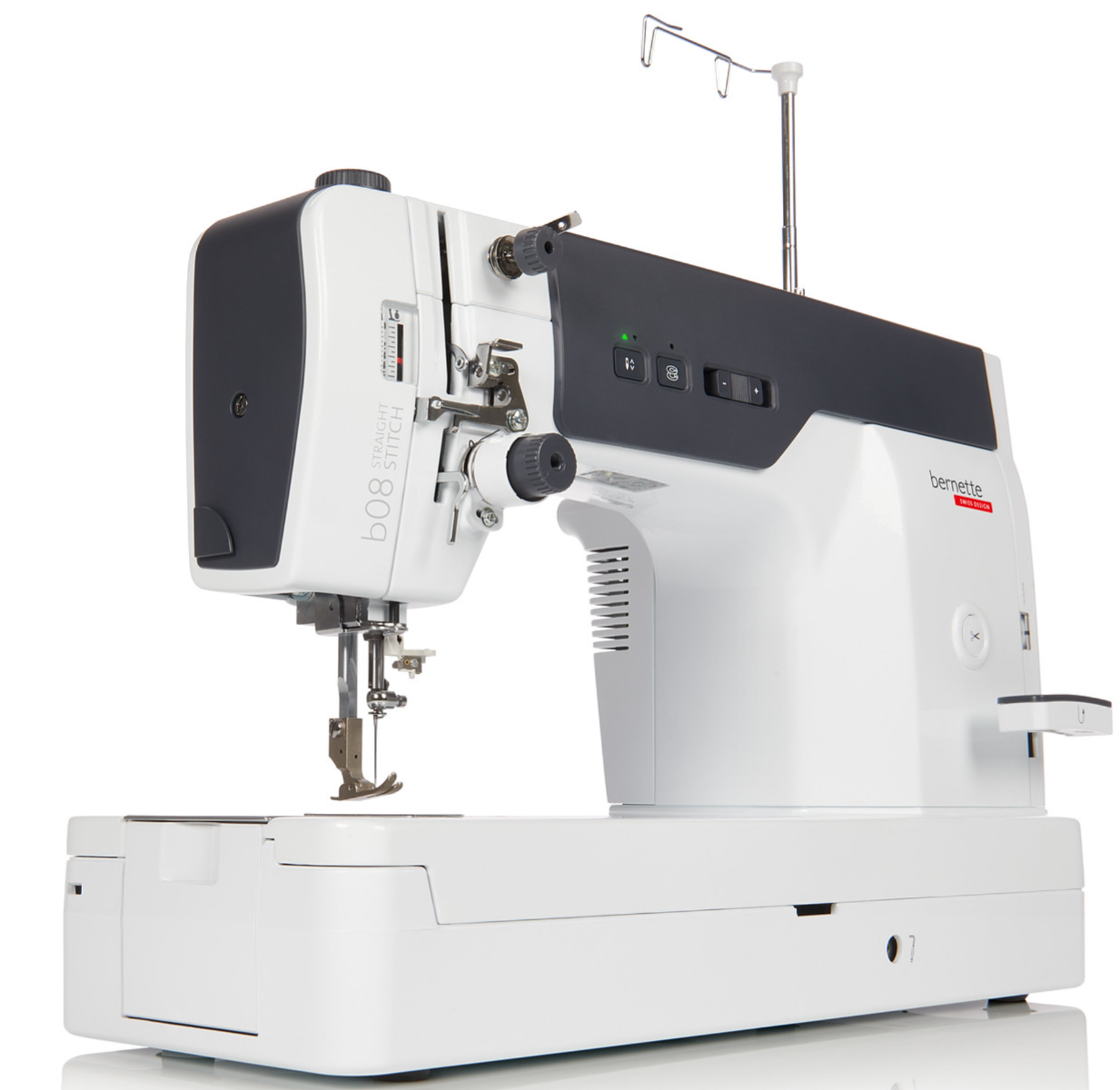 El cortahílos automático proporciona una comodidad adicional, mientras que la canilla extragrande y el motor de devanado de canillas independiente permiten sesiones de costura más largas sin interrupciones. La robusta carcasa metálica de la b08 evita las vibraciones y garantiza así una costura impecable: la elección perfecta.