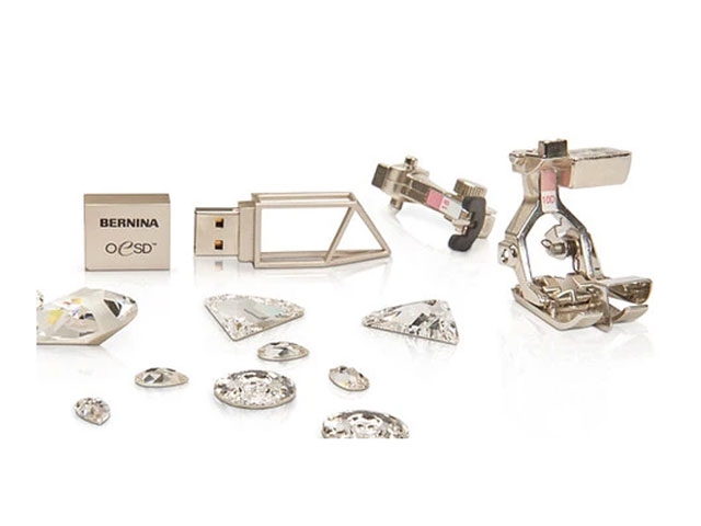 – Unidad USB con 303 diseños de bordados, de ellos 35 son exclusivos (bandeja inferior)