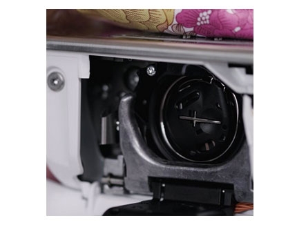 La costura es silenciosa y rápida, esto se debe a que la carga de la canilla es frontal, y no tienes que mover la labor para rellenarla cuando se te acane, la lanzadera de Bernina mantiene las puntadas firmes y precisas con una velocidad máxima de 1000 puntadas por minuto.