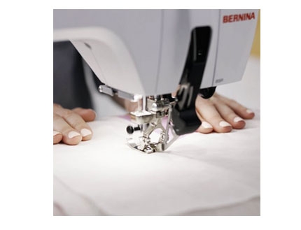Cose desde los tejidos más delicados como son las gasas hasta los tejidos más gruesos como el cuero. Gracias al arrastre dual de Bernina, arrastre de la tela por la parte superior e inferior, excelente para materiales finos y resbaladizos. Es fácil de encajar y de plegar cuando no se use.