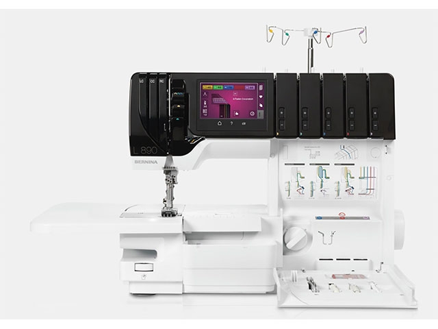 El nuevo modelo remalladora/recubridora de Bernina es la L890, una máquina que cuenta con unas prestaciones espectaculares que hacen que coser sea mas rápido y cómodo, ademas como ya sabemos las maquinas overlock en ocasiones nos presentan dificultades en su enhebrado y este modelo cuenta con un enhebrado por aire en un paso que le da esa facilidad de manejo que tanto se busca en una maquina overlock. Este enhebrado consiste en que los hilos del ancora se mueven por aire a través de la maquina con tan solo pisar una vez el pedal. Ahora tienes las manos libres para guiar la tela y colocar las áncoras en la posición correcta del enhebrador por aire: no es necesario que gires el volante manual ni que busques la posición correcta.