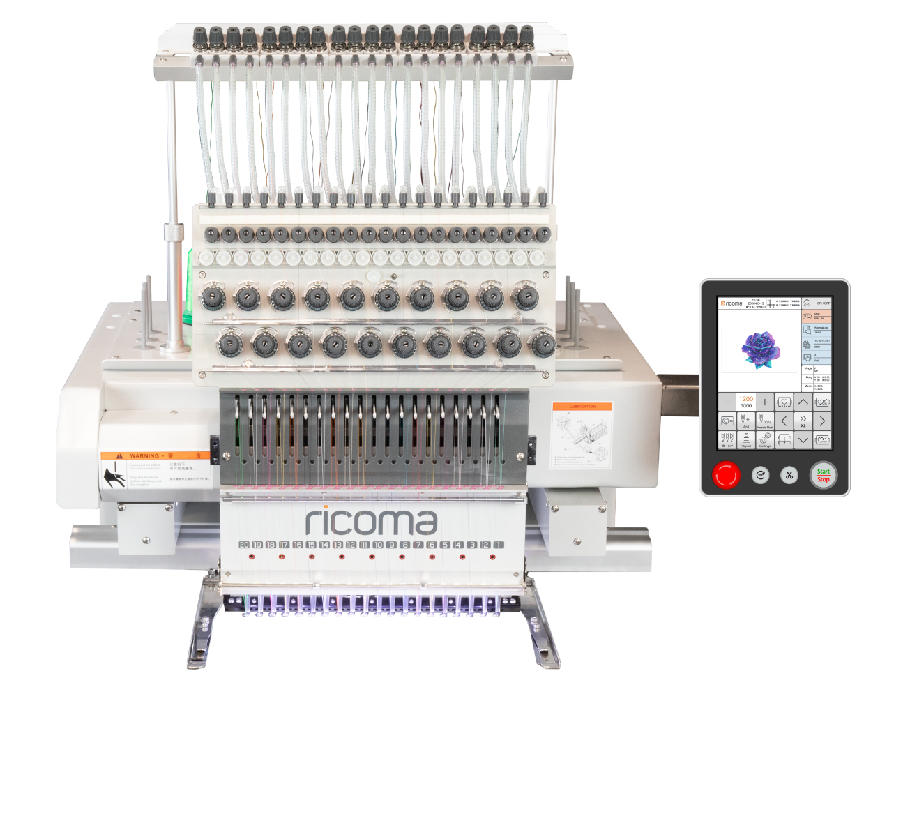 1. 1 Cabeza y 20 agujas: Permite realizar bordados complejos utilizando hasta 20 colores diferentes en un solo diseño.