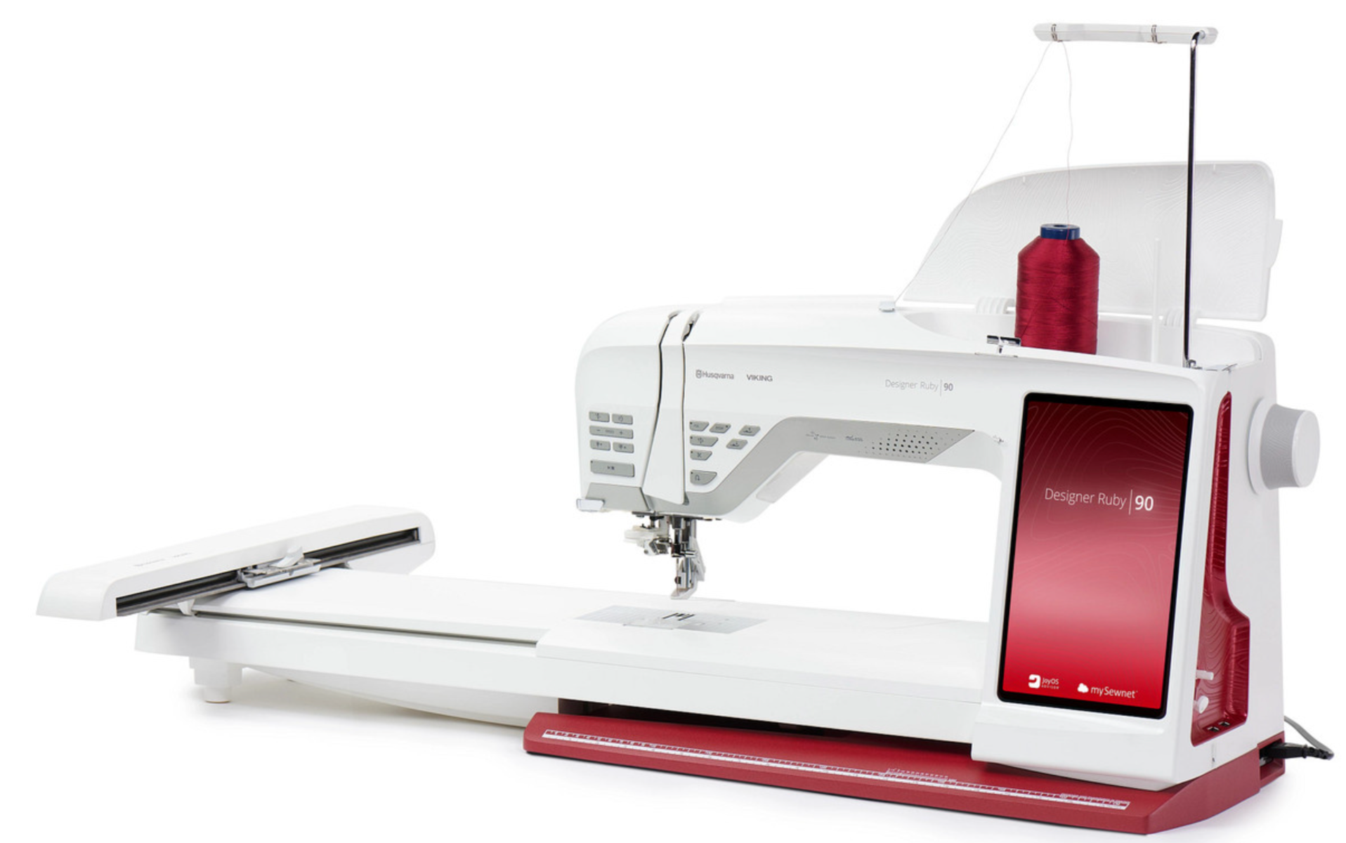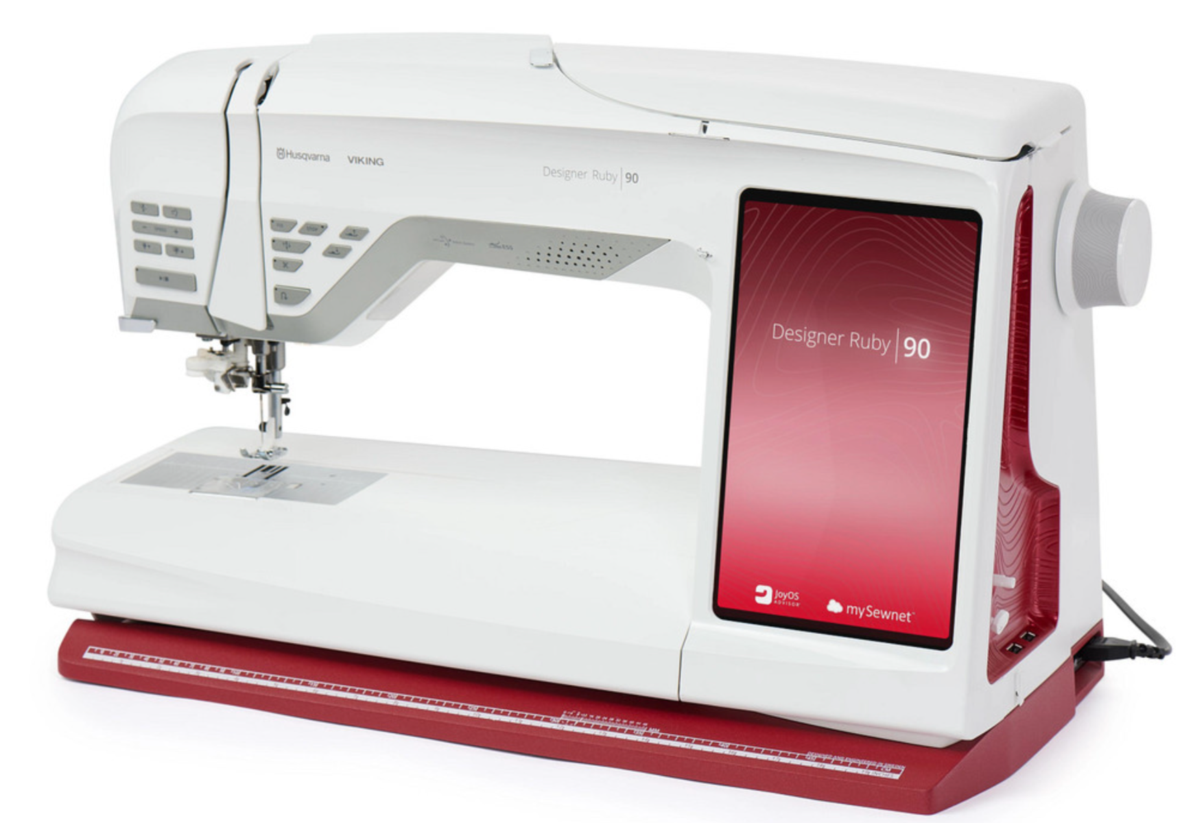 La Husqvarna Designer Ruby 90 es una máquina de coser y bordar avanzada, diseñada para usuarios que buscan una combinación de innovación y creatividad. Ofrece una gran pantalla táctil de alta resolución, perfecta para controlar sus más de 800 puntadas y numerosos diseños de bordado integrados. Su amplio área de trabajo es ideal para proyectos grandes, y su conectividad inalámbrica con mySewnet™ permite descargar y compartir diseños sin complicaciones. La tecnología Sensor System™ ajusta automáticamente la altura del prensatelas, garantizando una alimentación de tela impecable.