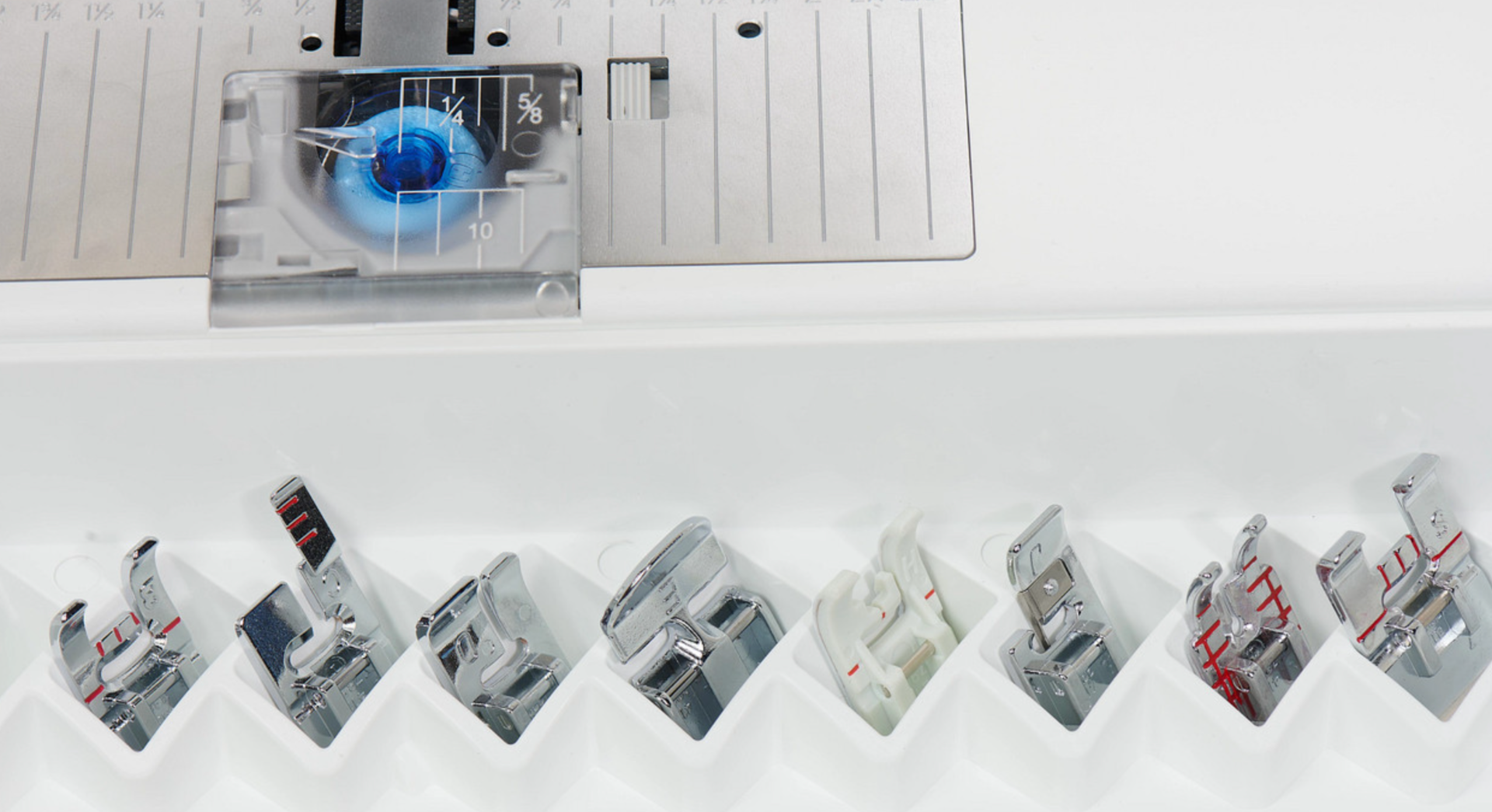 - Sistema Sensor System™: Ajuste automático del prensatelas para una alimentación de tela precisa.