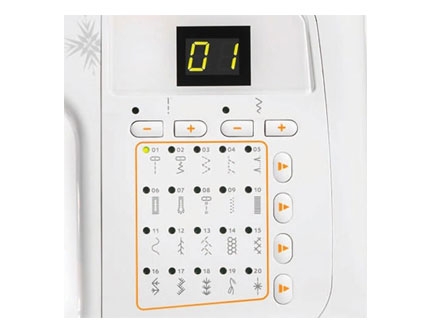 20 tipos de puntadas utilitarias, decorativas y de acolchado.