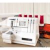 Caja de accesorios, destornillador, hoja de cuchillo (para cuchilla superior), discos de rosca desenrollar (4), las redes de carrete de hilo (4), engrasador, llave Allen, pinzas, cepillo de pelusa, los titulares de Cono (4), de recubrimiento de mesa / cortador cubierta C ( para la cubierta / cadeneta), enhebrador de aguja, cubierta de polvo, bandeja de residuos, mesa de extensión que incluye cuatro patas y alfiler, pack Aguja (sin foto), incluyendo tres agujas, tamaño # 14/90 y dos agujas, tamaño # 12/80 (sistema de ELx705).