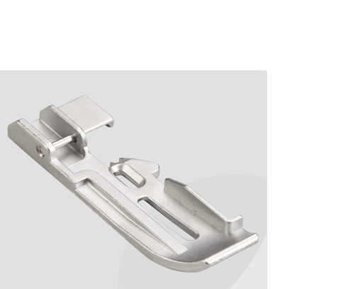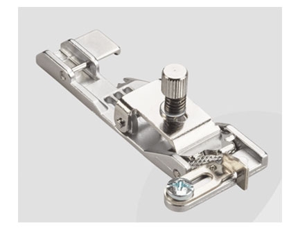Prensatelas para cintas planas: Para colocar cintas planas de refuerzo o cordones.La guía se puede regular según el ancho de la cinta o cordón.