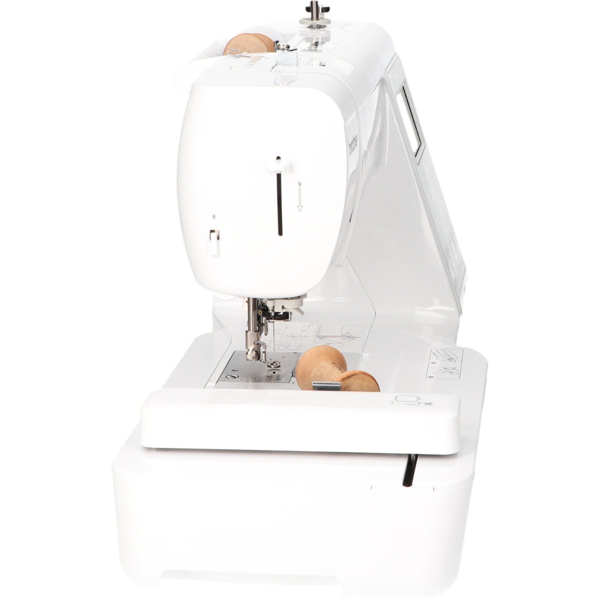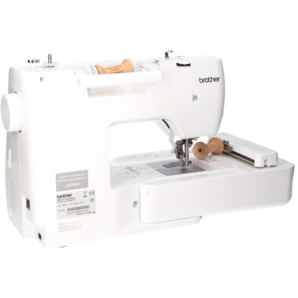 Configuración rápida de bobina simplemente coloque una bobina completa y siga la guía, puede comenzar su proyecto. Sensores de hilo El Innov-is M340ED tiene sensores de hilo superior e inferior que le avisan si el hilo está roto o si la bobina está casi agotada. Tecla cortadora de hilo automática, corta automáticamente los hilos superior e inferior con solo tocar una tecla.