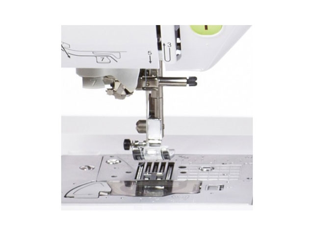 Máquina de coser automática con un amplio área de trabajo, ideal para el patchwork y el acolchado con acabados profesionales. Permite trabajar con una enorme selección de telas, desde las más gruesas hasta las más delicadas sedas y gasas.