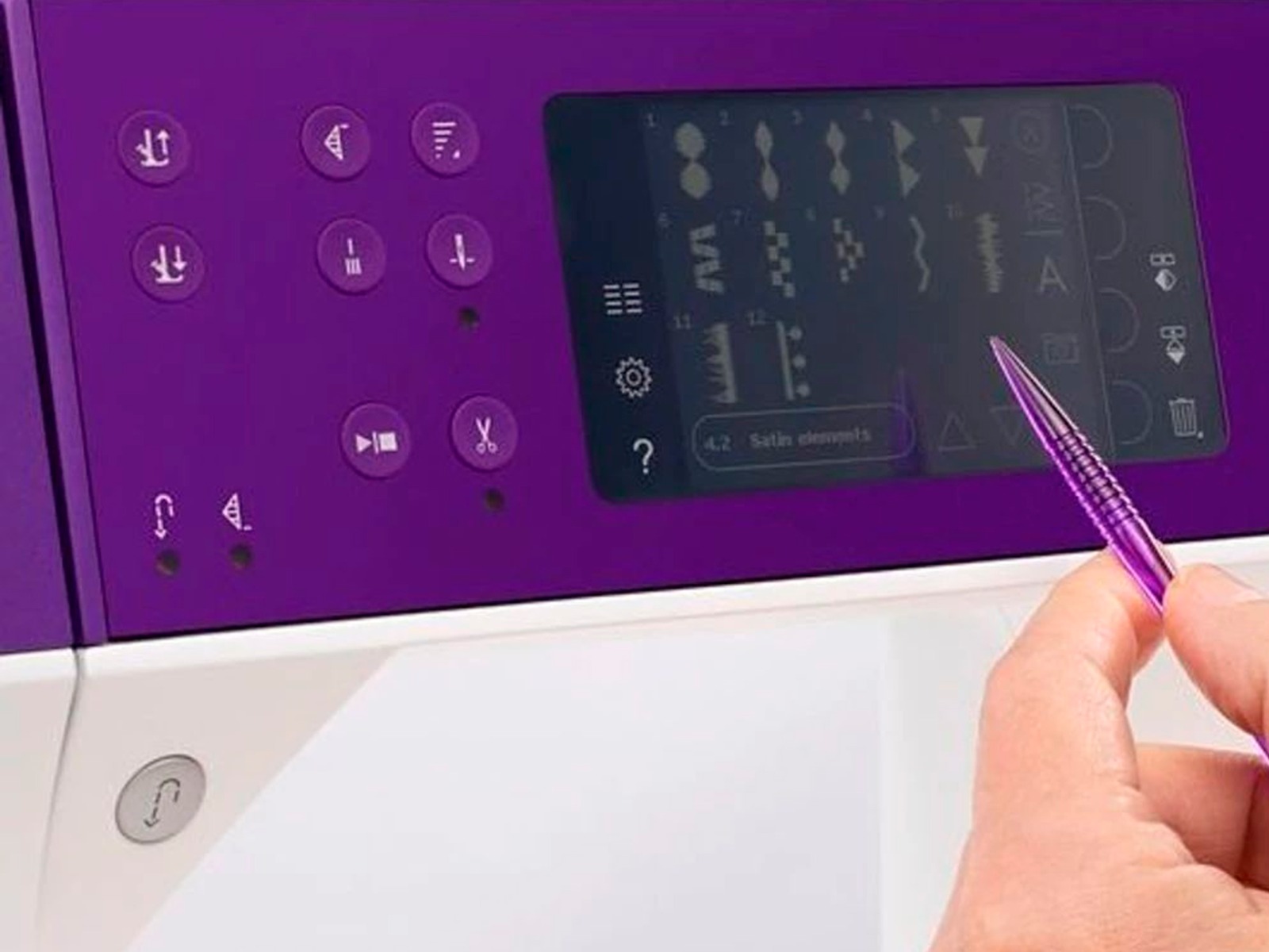 274 puntadas, incluye puntadas utilitarias, ojales, puntadas decorativas amplias de 9 mm, puntadas de quilt, punto de cruz y puntadas de dobladillo.