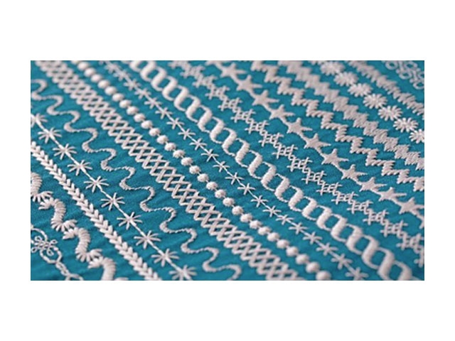 Tapering en todas las Puntadas Decorativas de 9mm, esta funcion sirve para estrechar el principio o el final de cualquier puntada y escojer diversos ángulos para tener opciones creativas ilimitadas