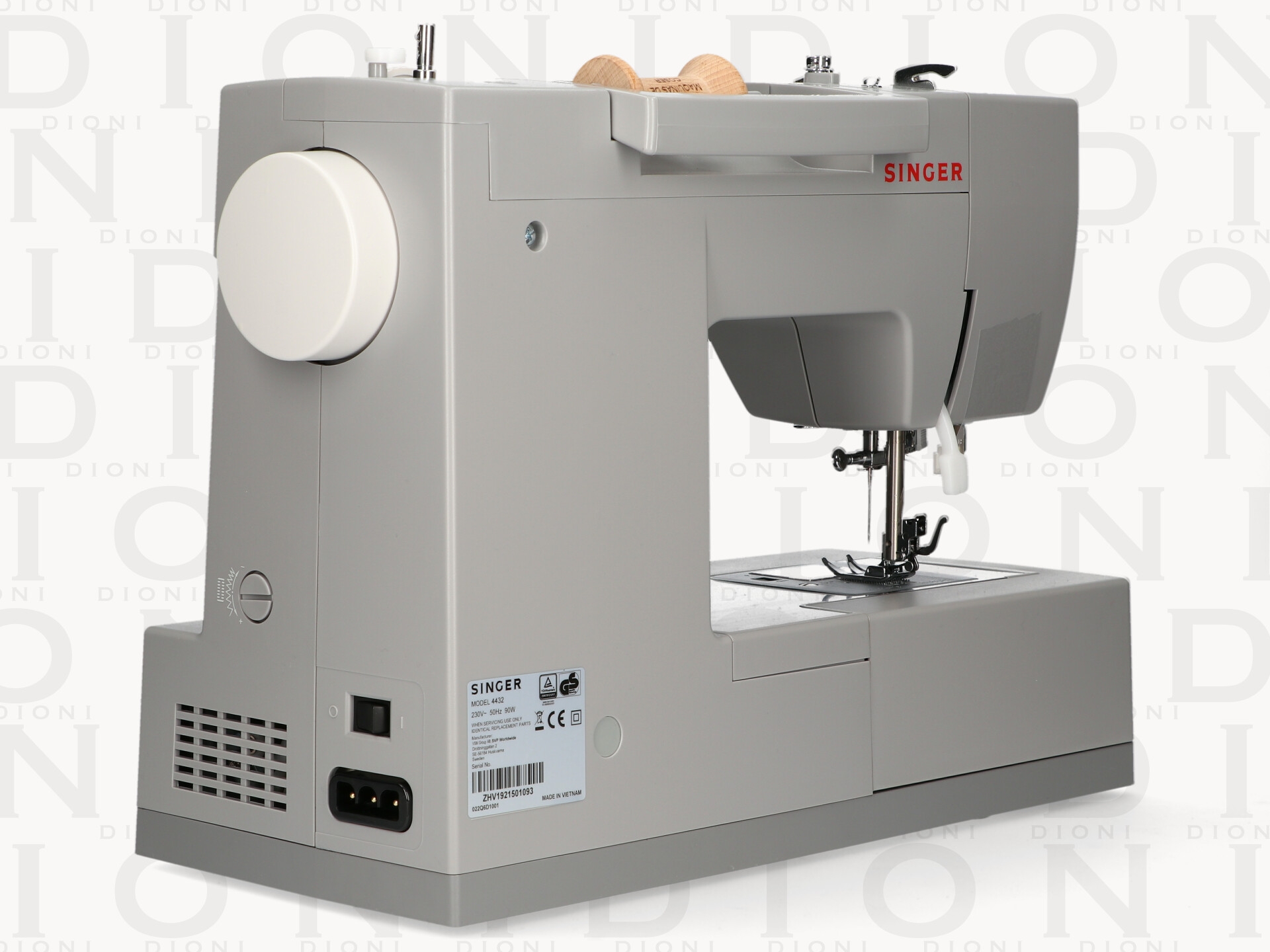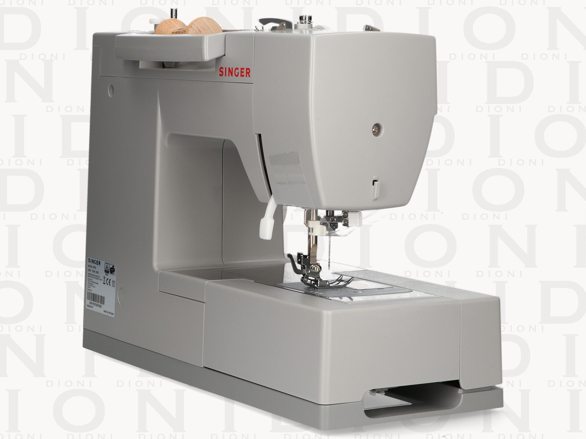 Máquina de coser mecanica de brazo libre, fácil de manejar con 32 puntadas diferentes, dos mandos selectores, uno de la puntada y otro para el ancho y largo de la puntada, hace los ojales automáticamente, enhebrador automático, es una máquina muy resistente y dura, con una potencia de motor alta para que los tejidos más gruesos se cosan sin ningún problema en ella.