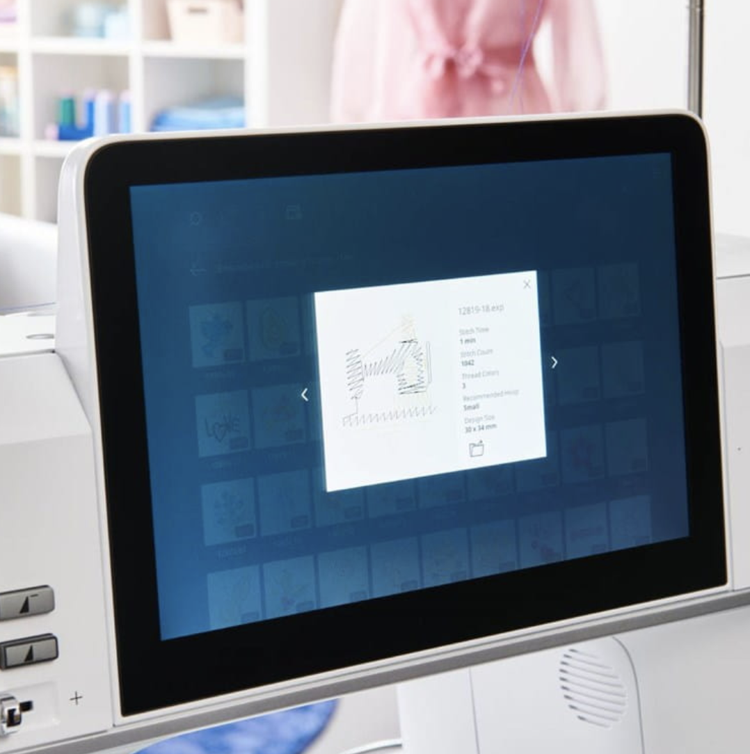 Equipada con una pantalla táctil gigante de alta resolución, la Bernina 990 ofrece un control total sobre cada detalle de tus proyectos. Desde la selección de puntadas hasta la edición avanzada de bordados, todo se gestiona de forma intuitiva, fluida y visual. Su nuevo sistema de diseño incorporado permite crear, ajustar y personalizar puntadas y patrones con una facilidad nunca antes vista.