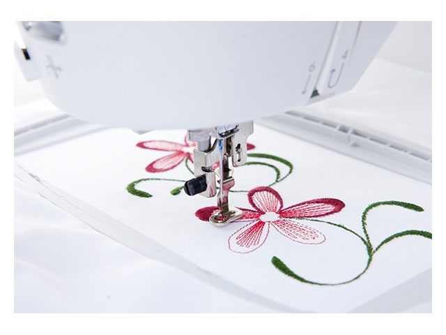 - 150 diseños de bordado incorporados en la máquina (florales, navideños, infantiles, punto de cruz, etc.).