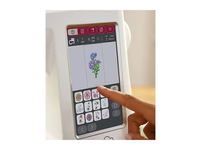 Dispone de 250 puntadas de costura, entre ellas están 150 diseños de bordado y 10 fuentes de abecedario de bordado. Las podremos seleccionar de manera fácil y sencilla en su pantalla táctil a color de 7 pulgadas, y personalizar de la manera que mas se ajuste a las necesidades de cada momento.
