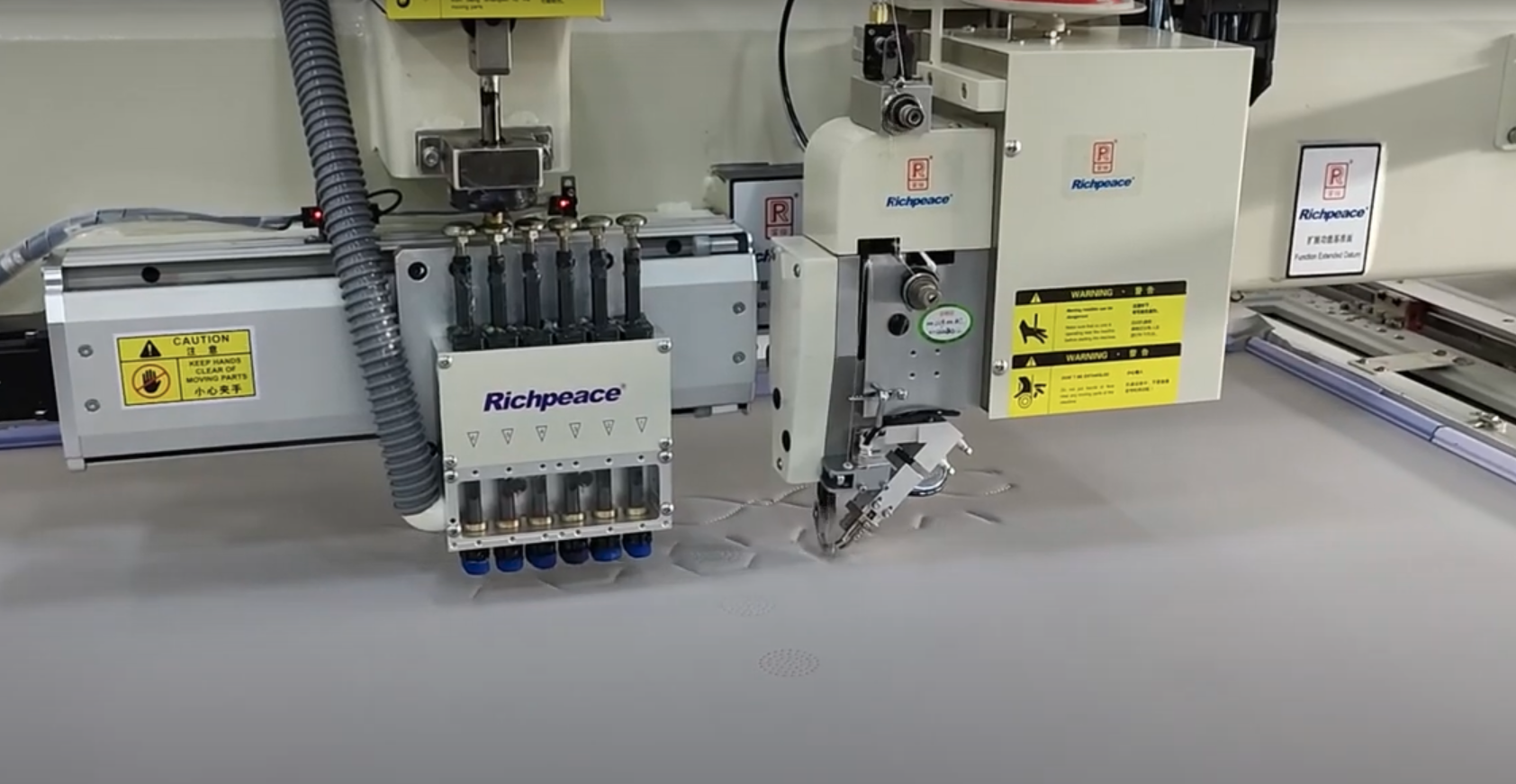 Presentamos nuestra innovadora máquina de coser y perforación industrial, diseñada para ofrecer un rendimiento excepcional en proyectos de gran envergadura. Este equipo de alta gama cuenta con una cabeza de costura y seis cuchillas de perforación que permiten ejecutar operaciones precisas y eficientes. Su amplia área de trabajo de 1200 x 800 mm es perfecta para manejar materiales de gran tamaño, lo que la hace ideal para la confección, tapicería y otros procesos industriales.