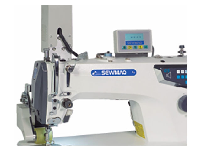 Máquina de pespunte de 1 aguja equipada con motor servo, caja de control y programador incorporados en el cabezal. Indicada para géneros finos y medios.