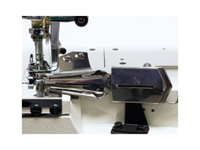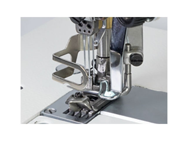 Equipada con todas las piezas necesarias para hacer el cambio, incluyendo portarollos y soportes para el vivo al ribetear.