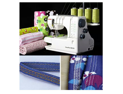 Máquina de recubrir doméstica de brazo libre de 3 agujas y 4 hilos con hilo recubridor inferior.