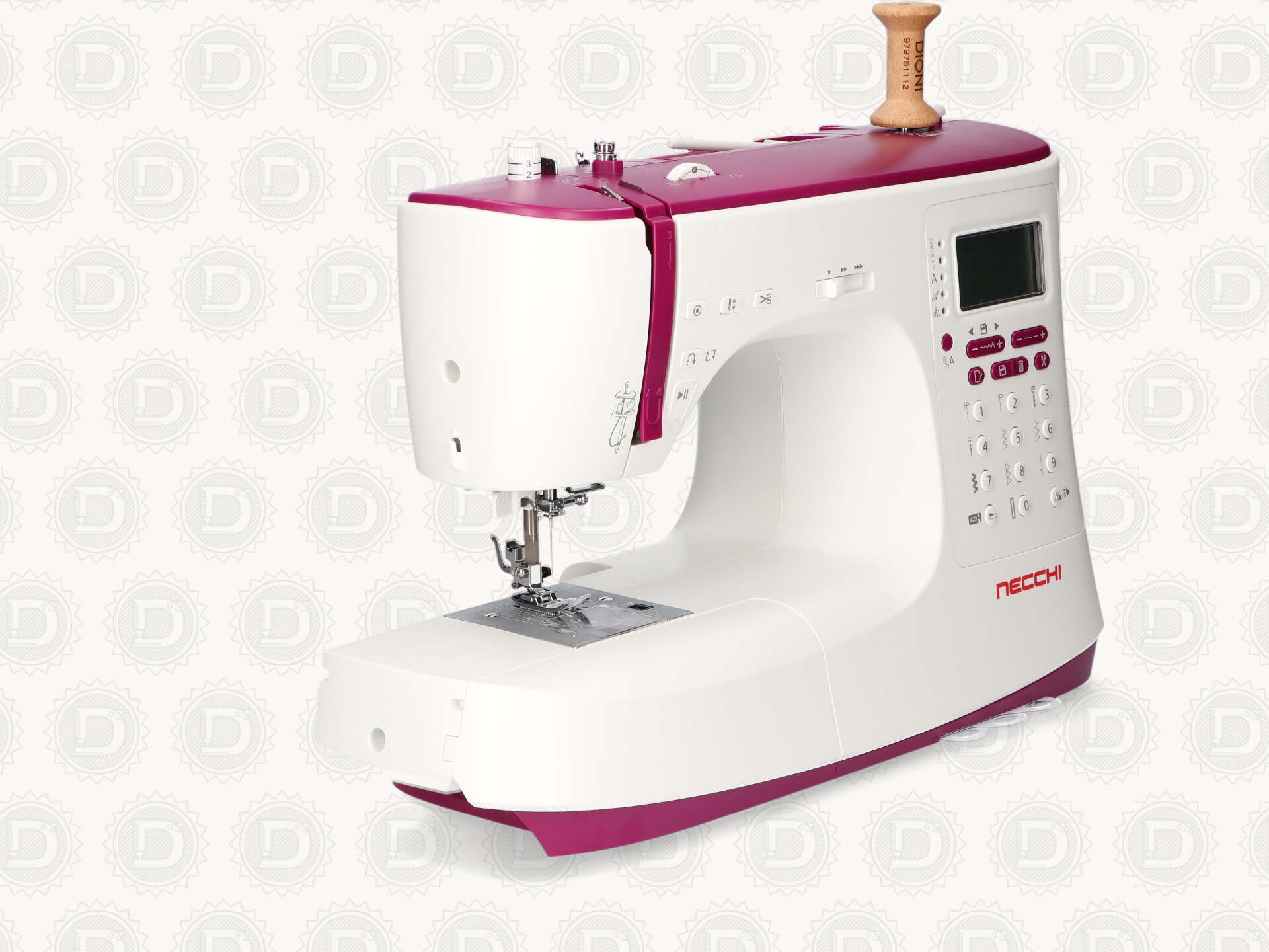 La máquina de coser electronica Necchi NC-204D cuenta con 439 puntadas, incluyendo 3 alfabetos, 13 tipos de ojales automáticos en un paso con el nuevo pie electronico (mide el boton y lo ajusta para un ojal perfecto). Dispone de boton cortahilos automatico, Regulador de Velocidad y Start/Stop . Incluye 13 prensatelas diferentes y mesa de extension.