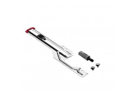 Guia para círculos Nº83: accesorio para bordado circular, con el que puede bordar círculos o semicírculos inusuales y decorativos. El aparato se fija al soporte independiente. El punto de giro puede situarse a la izquierda o la derecha. El tornillo de fijación es tan plano que no perturba el transporte de la tela. En el carro se puede ajustar un radio entre 2,5 y 13,5 cm. Para bordar círculos la tela tiene que estar bien estabilizada. De ahí que debería colocar 2 o 3 capas de estabilizador debajo de la tela.
