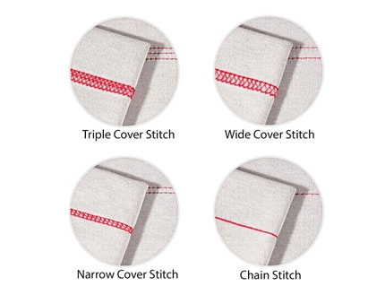 - 3 y 4 hilos: Permite realizar puntadas de recubrimiento perfectas para diferentes tipos de tejido.