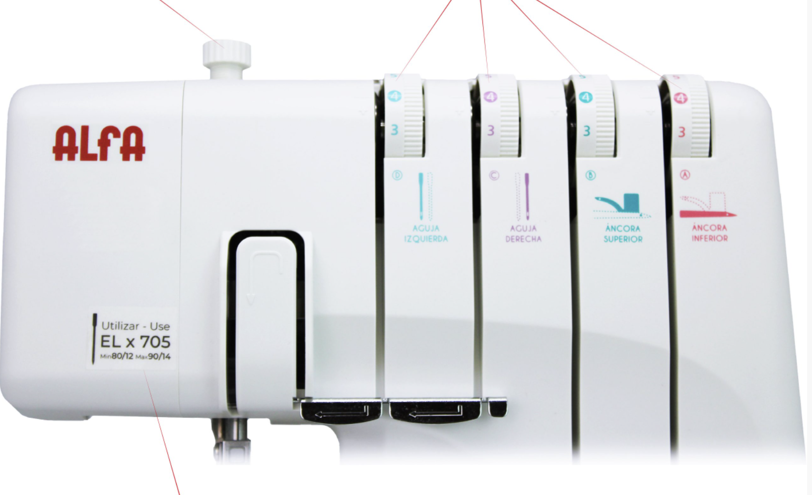 - Posibilidad de coser con 3 o 4 hilos.