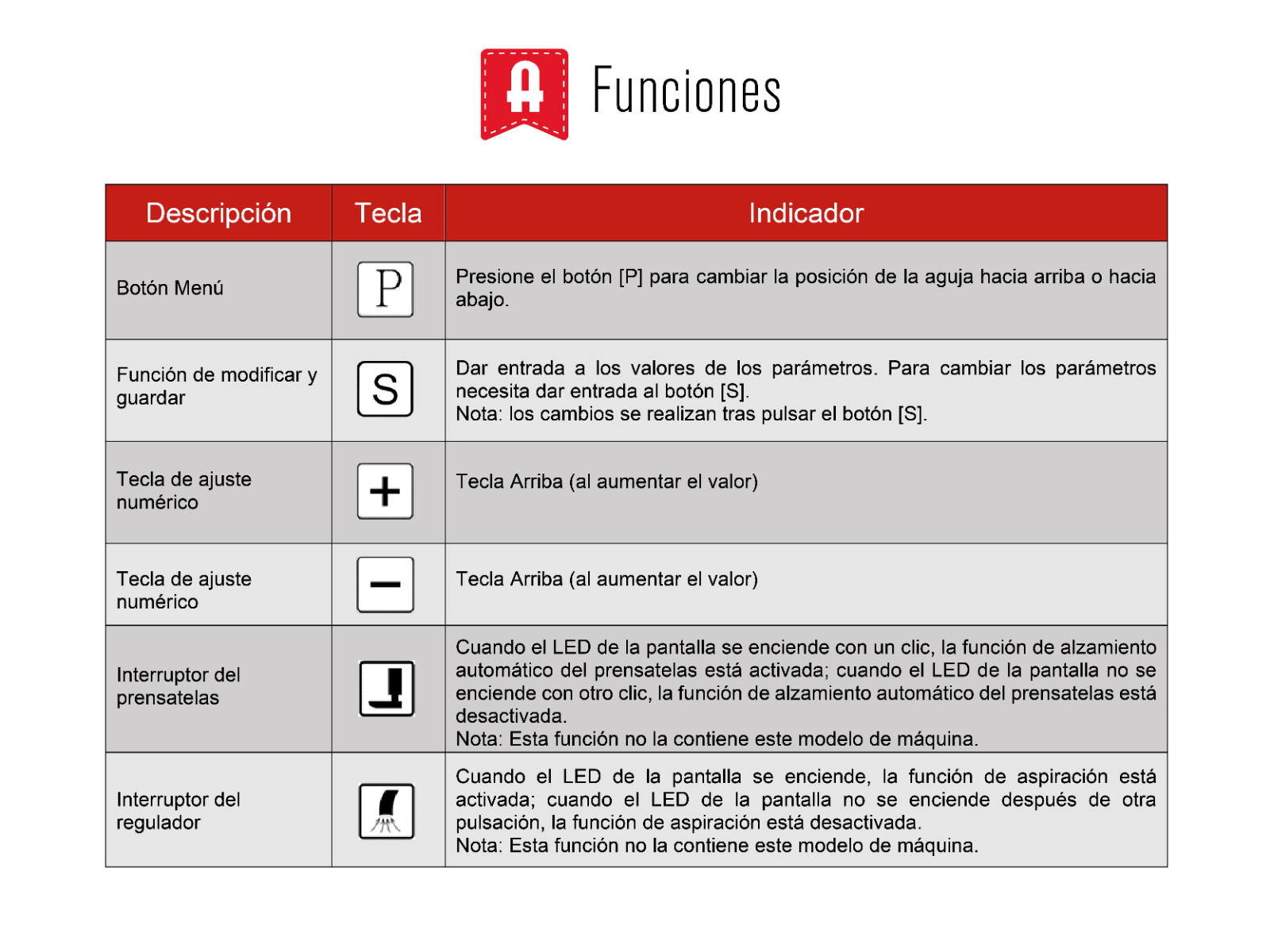 - Posibilidad de programar la aguja arriba o abajo.