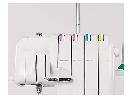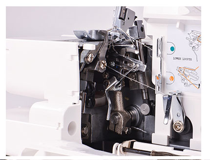 Fácil enhebrado ,buen control de las tensiones y su gran polivalencia , convierte esta remalladora en una de las más potentes del mercado.