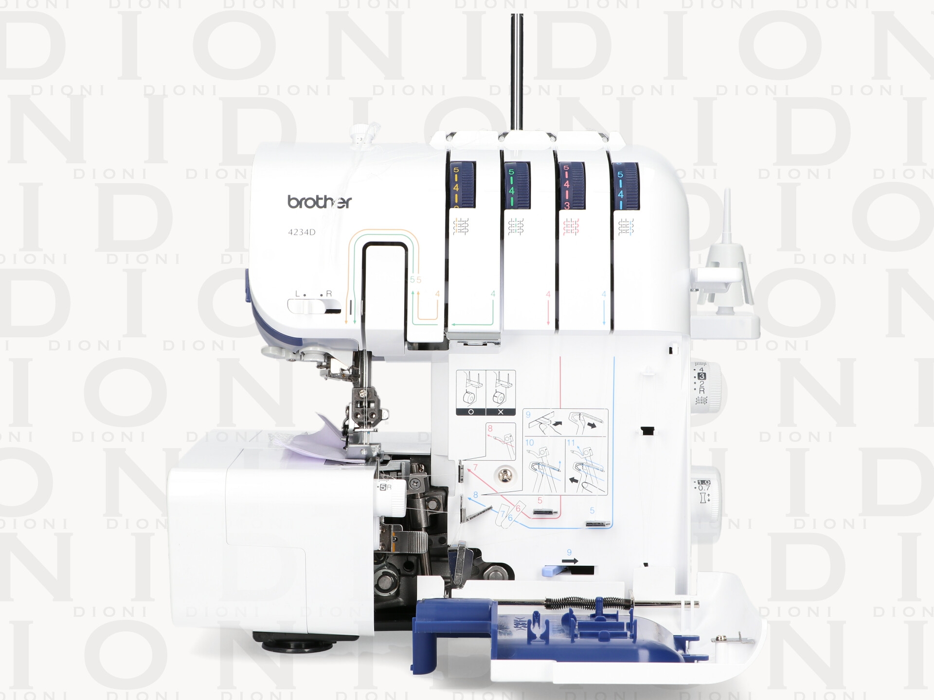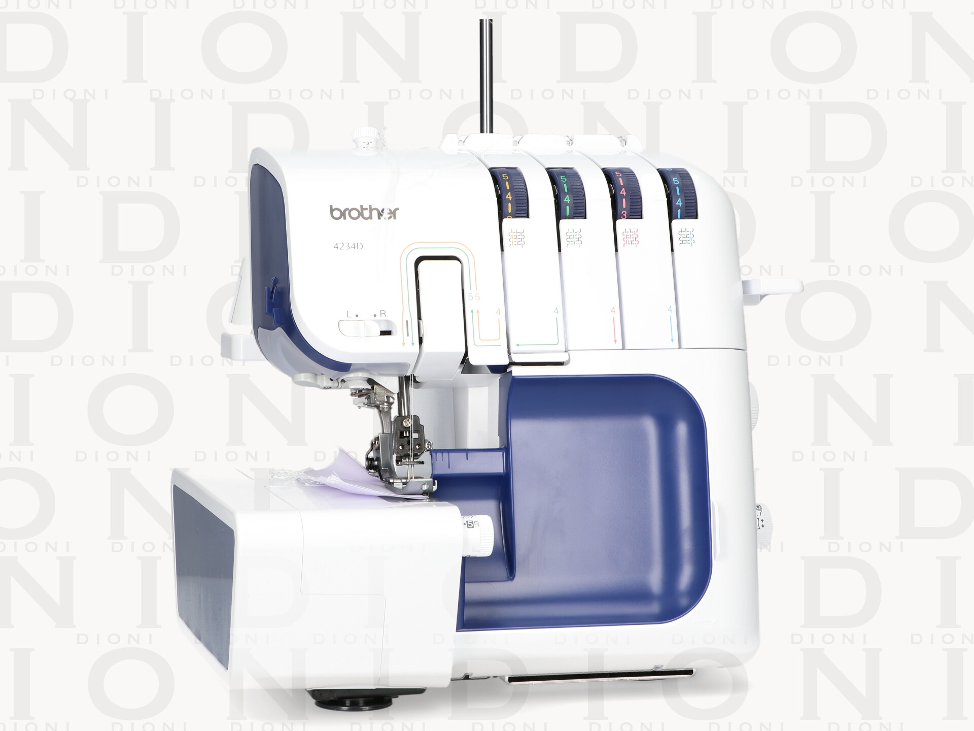 La Brother 4234D es una remalladora avanzada diseñada para ofrecer acabados profesionales y precisos en una amplia variedad de tejidos. Capaz de trabajar con 2, 3 o 4 hilos, ofrece flexibilidad para costuras de alta calidad, dobladillos enrollados y decoraciones. Su enhebrado automático facilita el proceso, y el ajuste de diferencial asegura que los tejidos elásticos y delicados no se frunzan o estiren. Además, cuenta con una cuchilla retráctil para cortar el exceso de tela con precisión y luz LED para una mejor visibilidad.