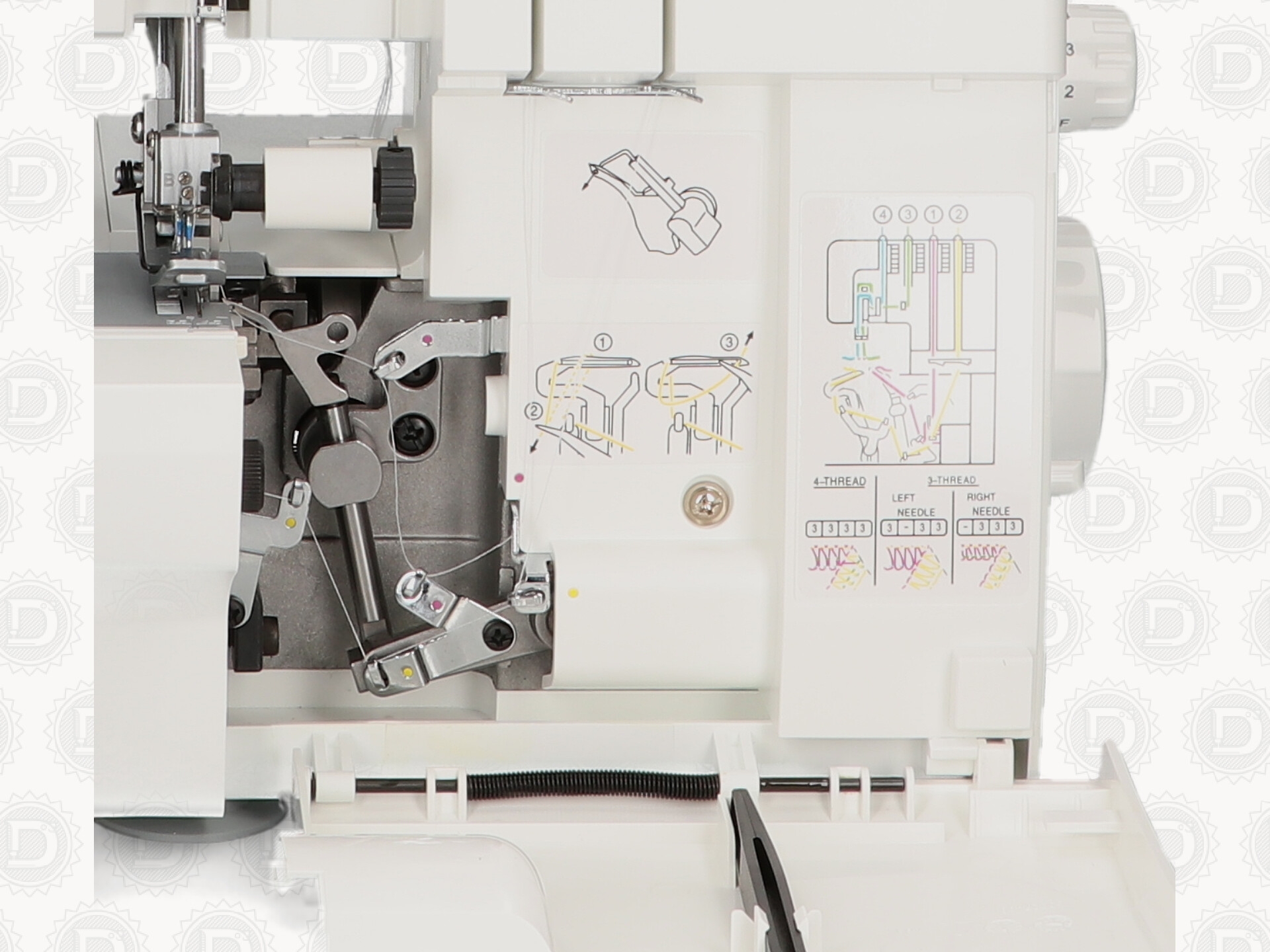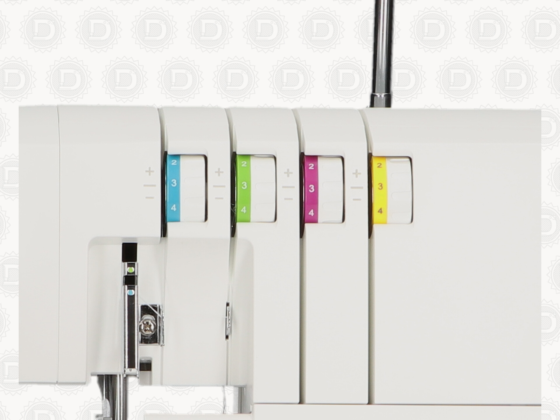 6 diversos tipos de puntada garantizan un resultado perfecto independientemente del proyecto: dobladillo invisible, dobladillo enrollado, dobladillo plano, costura y acabado de bordes.