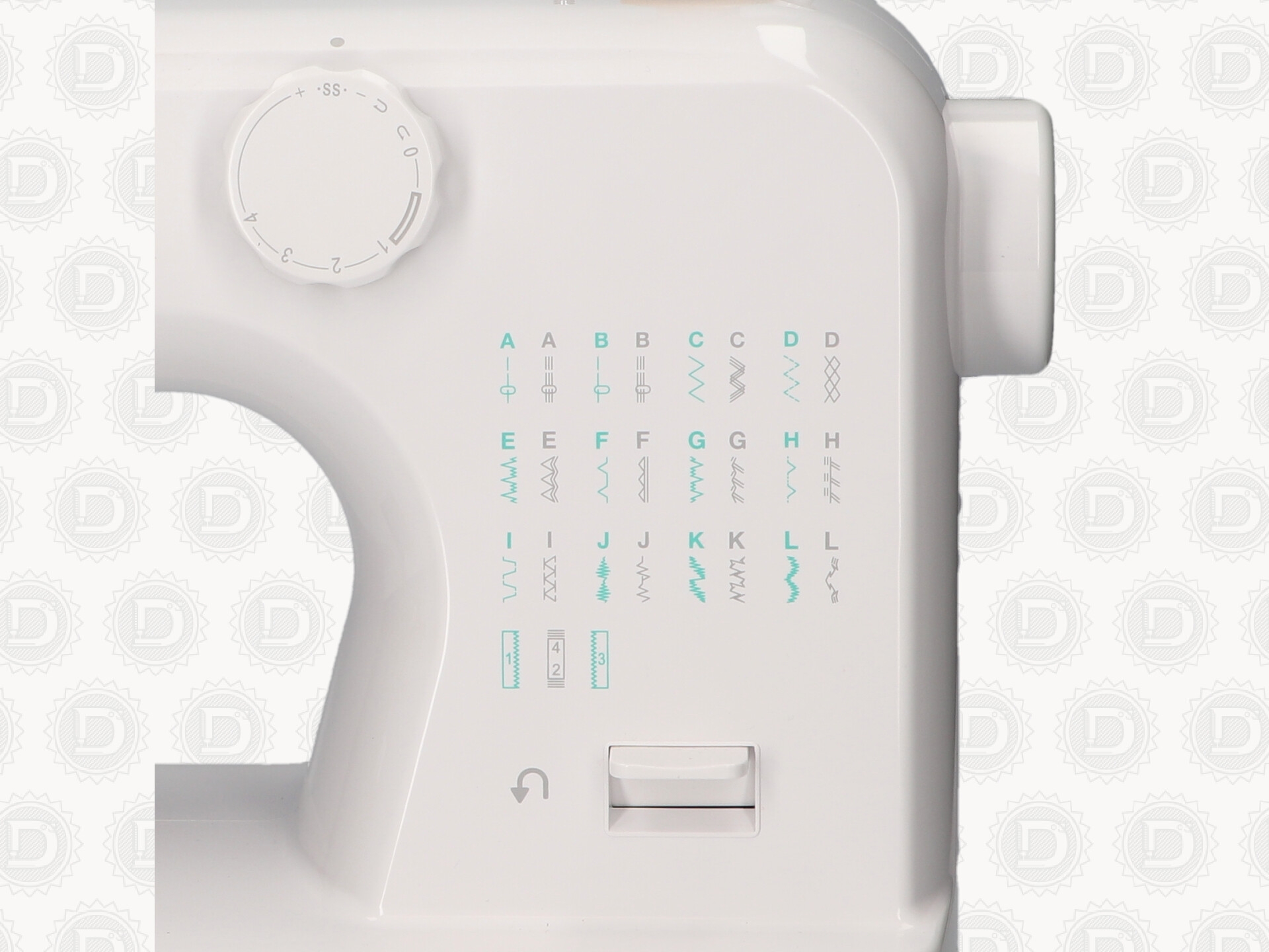 Selector del largo de puntada y ancho del Zig Zag. Dientes retráctiles con sólo accionar la palanca, se pueden ocultar los dientes permitiendo realizar el bordado libre y costura de botón.