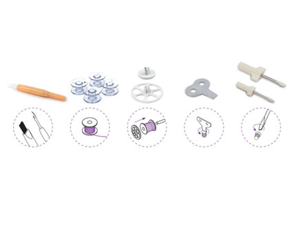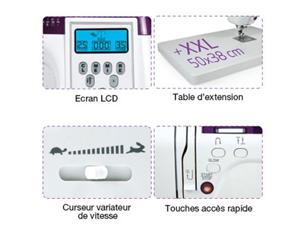 Funciones principales: – 200 programas de costura (incluyendo 8 tipos de ojales automáticos, recta, zig-zag, overlock y puntadas decorativas) – fuente alfabeto – regulación sin problemas de largo de puntada (máx. 5 mm ) y anchura (máx. 7 mm) – automático presillado – Costura hacia atrás – Velocidad máxima de costura 750 spm – regulación electrónica de velocidad manual – LCD pantalla de guía – Botón CL – patrón claro / borrado función – ME botón – Función patrón de memoria – Botón MI – espejo puntos de sutura – botón RE – patrón repetitivo – botón Start / Stop – botón Inicio lento – Posicionamiento aguja (arriba / abajo) – costura «puntada a puntada» – enhebrador automático de la aguja – presión ajustable del prensatelas – palanca de descenso del alimento – complemento en los pies – SISTEMA MATIC – brazo libre para coser circular – Lámpara LED – cortador de hilo – Gancho giratorio – Los componentes metálicos equipados con: – pie estándar – overlock pie – pie para cremalleras – Pie para puntada invisible – prensatelas – Pie satinado (para puntadas decorativas) – 4 bobinas – aguja set – descosedor con pincel – destornilladores (grande y pequeña) – Destornillador placa de aguja – Tapa del pasador carrete (grande y pequeña) – pedal – Tapa dura – Mesa de extensión 50 x 38 cm