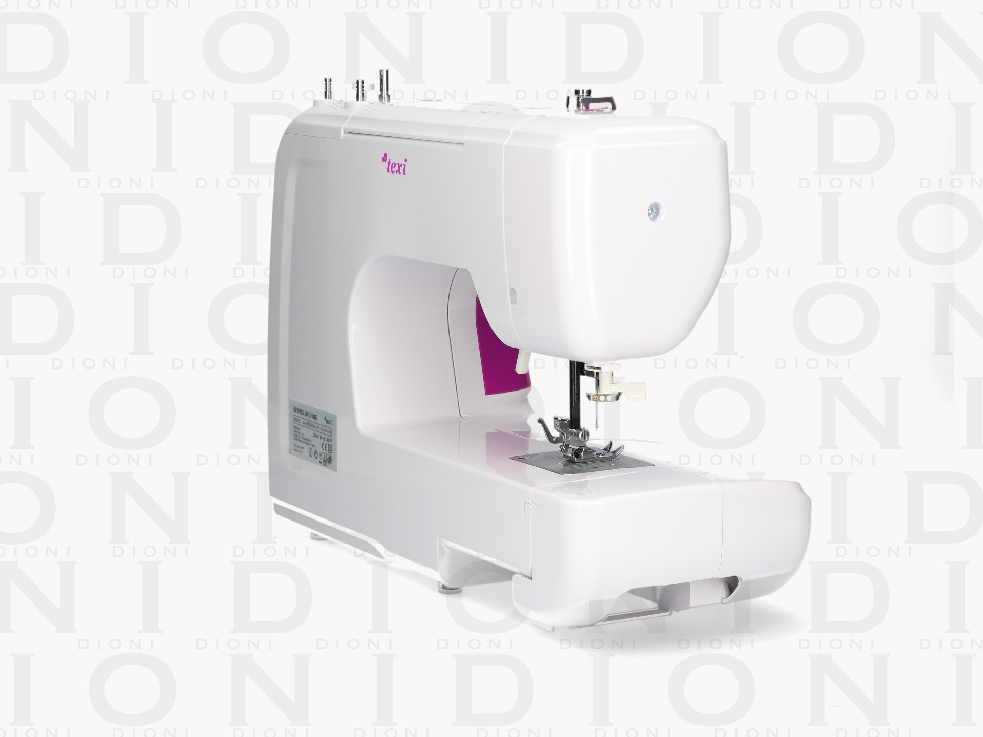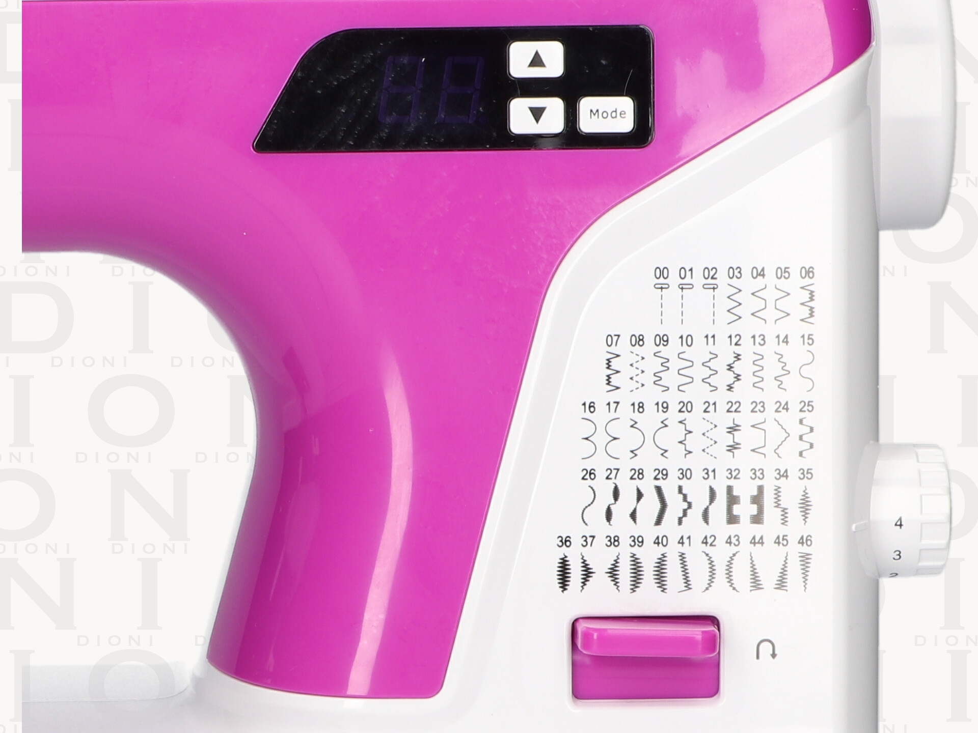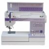 Máquina de coser mecánica multifuncional con selección de puntadas electrónicas y regulación del ancho de puntada.
