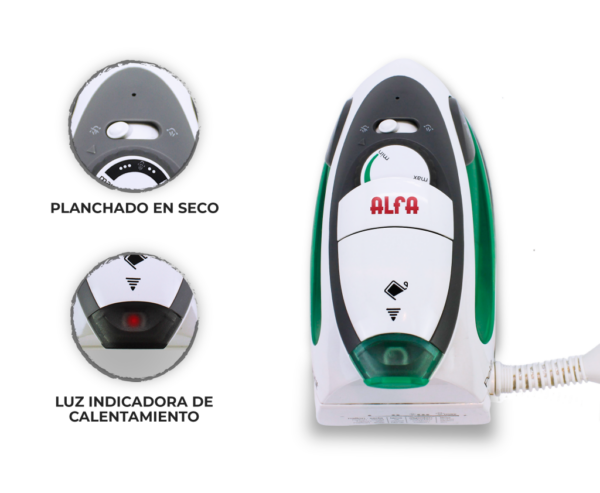 nLa Alfa GO es una plancha vertical potente, ligera y muy fácil de usar, diseñada para eliminar arrugas de forma rápida en todo tipo de tejidos. Con 1630 W, vapor continuo de 30 g/min y solo 30 segundos de calentamiento, es ideal para el día a día, viajes y retoques rápidos. Además, elimina el 99,9 % de bacterias, cuida la ropa y te ahorra tiempo.